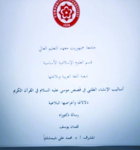 أساليب الإنشاء الطلبي في قصص موسى عليه السلام في القرآن الكريم: دلالاتها وأغراضها البلاغية/ لقمان يوسف.- سيواس، تركيا: جامعة جمهوريت، قسم اللغة العربية وآدابها، 1445 هـ، 2024 م (دكتوراه).