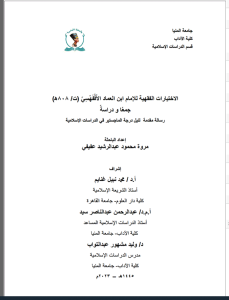 الاختيارات الفقهية للإمام ابن العماد الأَقْفَهْسي (ت 808 ه): جمعًا ودراسة/ مروة محمود عفيفي .- المنيا: جامعة المنيا، 1445 هـ، 2023 م (ماجستير).