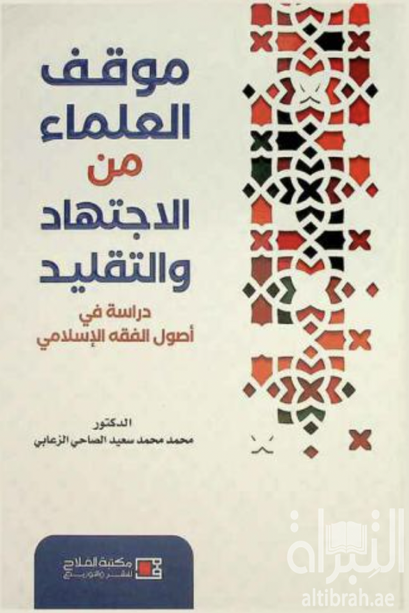موقف العلماء من الاجتهاد والتقليد: دراسة في أصول الفقه الإسلامي/ محمد سعيد الصاحي الزعابي.– الكويت: مكتبة الفلاح، 1444 هـ، 2023 م، 391 ص.