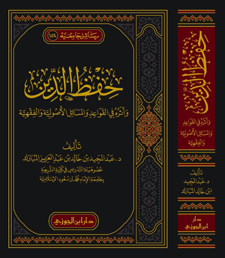 حفظ الدين وأثره في القواعد والمسائل الأصولية والفقهية/ عبدالمجيد بن خالد المبارك.– الدمام؛ الرياض: دار ابن الجوزي، 1446 هـ، 2024 م. (أصله رسالة جامعية).