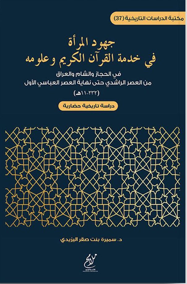 جهود المرأة في خدمة القرآن الكريم وعلومه في الحجاز والشام والعراق من العصر الراشدي حتى نهاية العصر العباسي الأول: دراسة تاريخية حضارية/ سميرة بنت صقر اليزيدي.– الشارقة: ملامح للنشر، 1446 هـ، 2024 م، 228 ص.