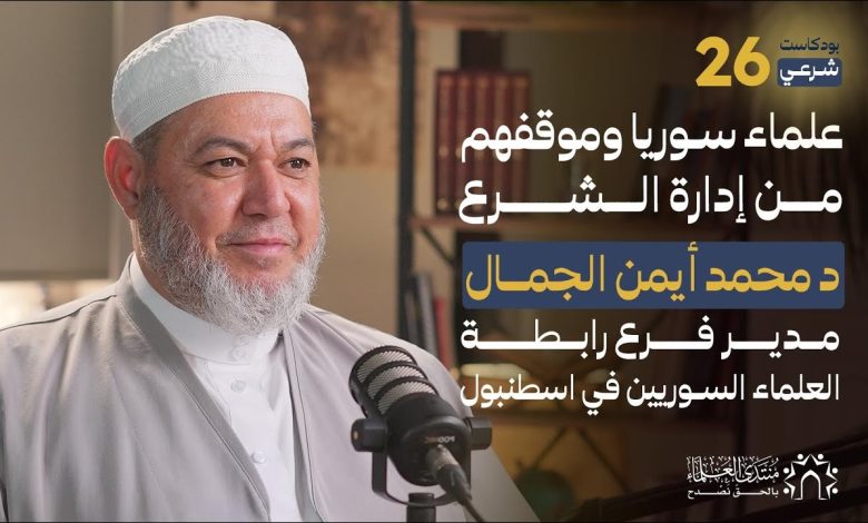 يستضيف البودكاست الدكتور محمد أيمن الجمال، مدير رابطة العلماء السوريين – فرع إسطنبول، وأستاذ الفقه في جامعة السلطان محمد الفاتح، في حوار صريح بلا مجاملة ولا مواربة، يتناول فيه تجربته الشخصية والعلمية، وقراءته الفقهية لمسار الثورة السورية، ومواقف العلماء بين النص الشرعي وضغوط الواقع السياسي.