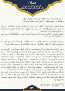 بيان إدانة واستنكار لعلماء الأمّة بخصوص تصريحات نائب شيعي في البرلمان العراقي ينال فيه من الخلفاء الراشدين والصحابي الجليل معاوية بن أبي سفيان -رضي الله عنهم أجمعين-