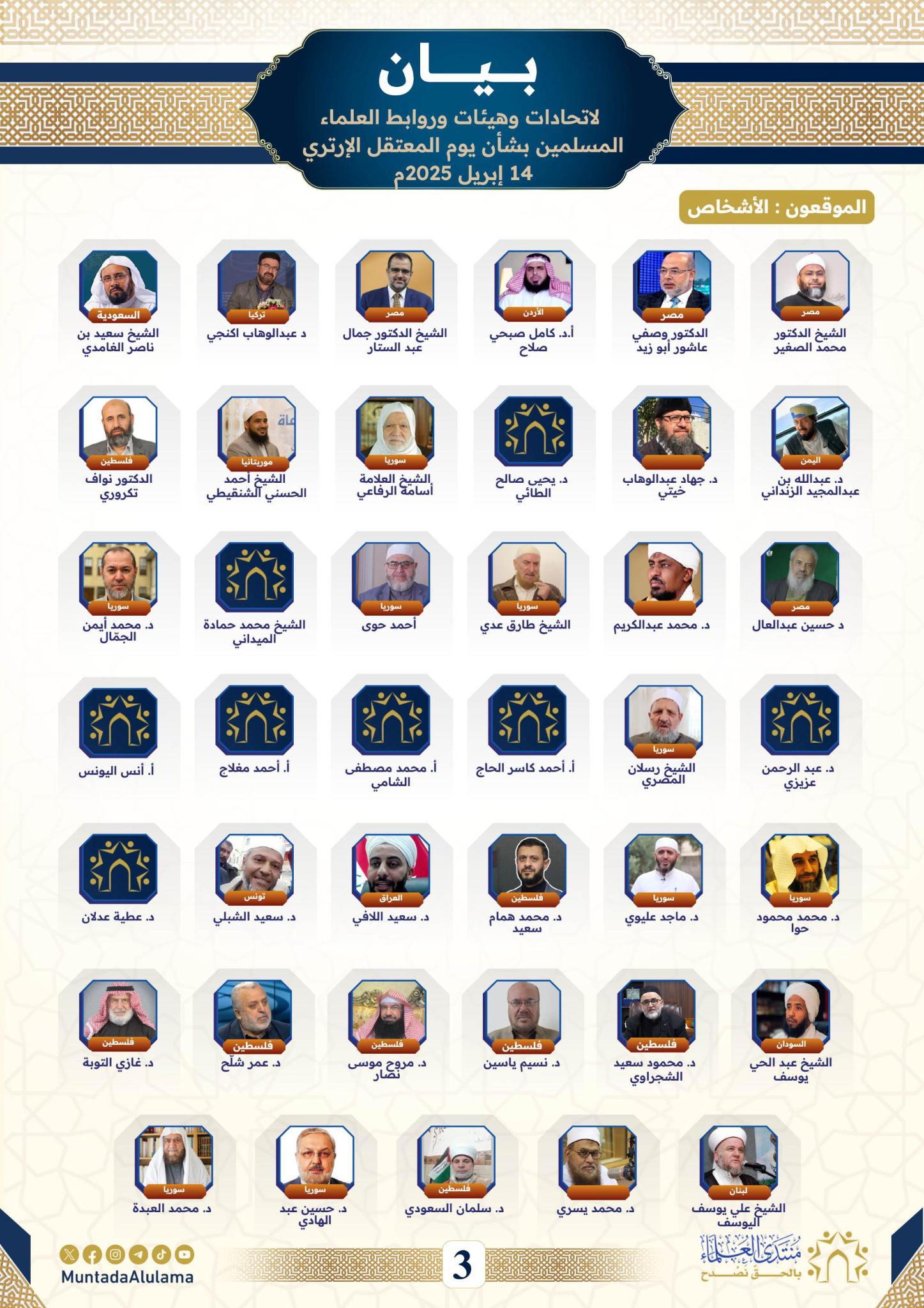 بيان لاتحادات وهيئات وروابط العلماء المسلمين بشأن يوم المعتقل الإرتري – 14 إبريل 2025م