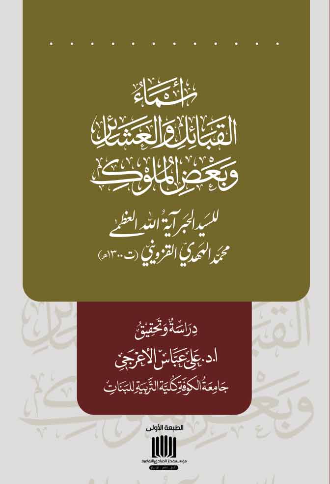 أسماء القبائل والعشائر وبعض الملوك/ محمد المهدي القزويني (ت 1300 هـ)؛ تحقيق علي عباس الأعرجي.– الحلة: دار الصادق، 1446 هـ، 2024 م، 303 ص.