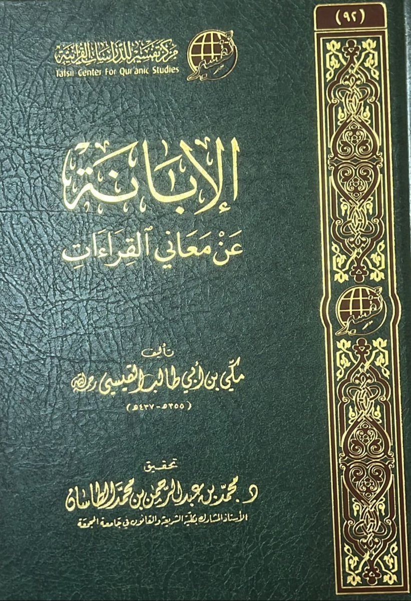 الإبانة عن معاني القراءات/ لأبي محمد مكي بن أبي طالب القيسي (ت 437 هـ)؛ تحقيق محمد بن عبدالرحمن الطاسان.– الرياض: مركز تفسير للدراسات القرآنية، 1446 هـ، 2024م.