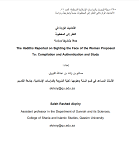 الأحاديث الواردة في النظر إلى المخطوبة جمعًا وتخريجًا ودراسة/ صالح بن راشد القريري.