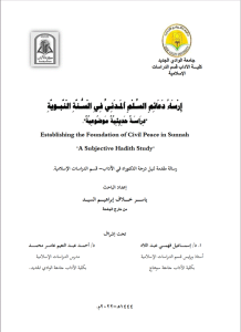 إرساء دعائم السلم المدني في السنة النبوية/ ياسر خلاف السيد.- الوادي الجديد، مصر: جامعة الوادي الجديد، 1444 هـ، 2022 م (دكتوراه).