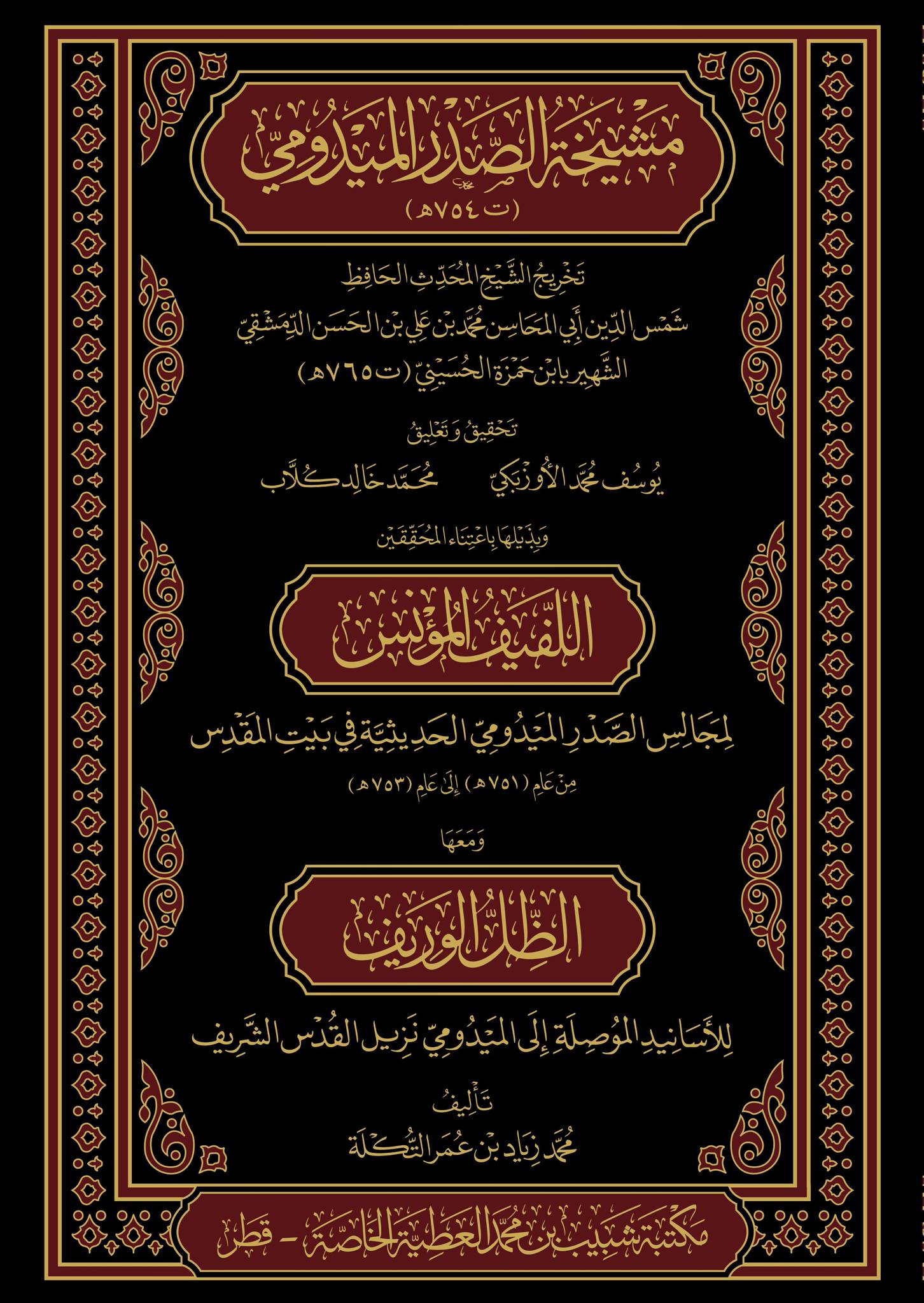 مشيخة الصدر الميدومي (ت 754 هـ)/ تخريج شمس الدين أبي المحاسن محمد بن علي بن حمزة الحسيني (ت 765 هـ)؛ تحقيق يوسف محمد الأوزبكي، محمد خالد كُلّاب. الدوحة: مكتبة شبيب بن محمد العطية الخاصة، 1446 هـ، 2024 م.