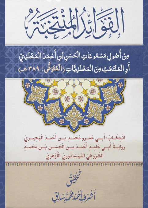 الفوائد المنتخبة من أصول مسموعات الحسن بن أحمد المخْلَدي، أو المنتخب من المخْلَديات (ت 389 هـ)/ انتخاب أبي عمرو محمد بن أحمد البَحيري؛ رواية أبي حامد أحمد بن الحسن الشروطي؛ تحقيق أشرف أحمد محمد سابق.– .– [قلالي، البحرين: مكتبة أهل الحديث]، 1446 هـ، 2025 م.