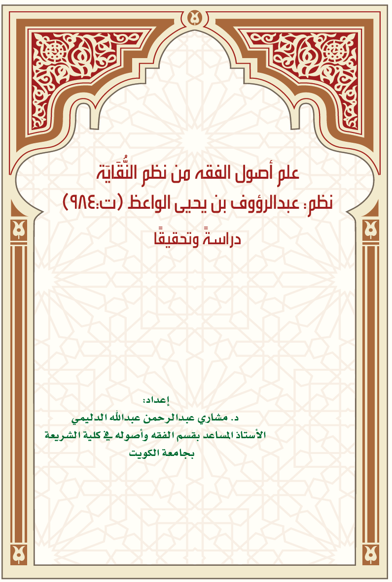 علم أصول الفقه من نظم النُّقاية/ نظم أبي الفضل عبدالرؤوف بن يحيى الواعظ المكي (ت 984 هـ)؛ تحقيق مشاري عبدالرحمن الدليمي.