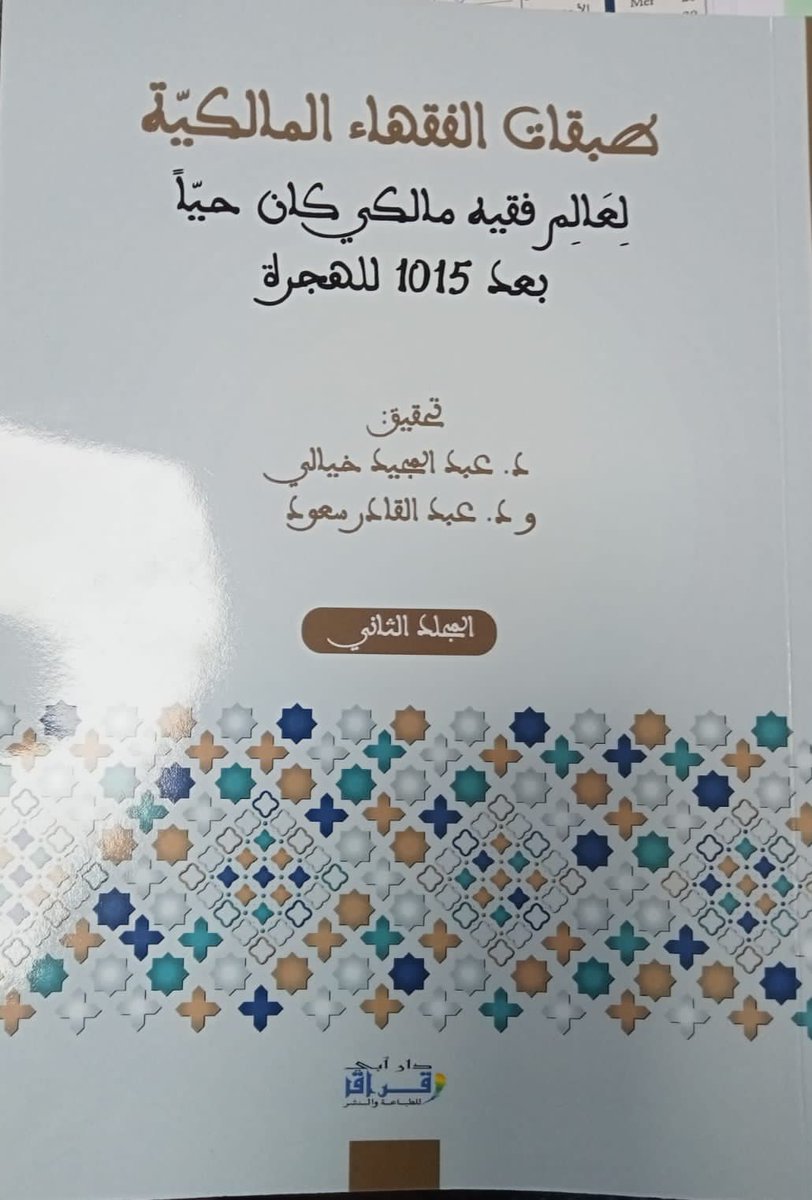 طبقات الفقهاء المالكية/ لفقيه مالكي مجهول (ت بعد 1015 هـ)؛ تحقيق عبدالمجيد خيالي، عبدالقادر سعود.– الرباط: دار أبي رقراق، 1446 هـ، 2025 م، 2مج.
