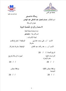 الاستعمال وأثره في المعجمية العربية: دراسة وصفية تصنيفية تحليلية/ حسام شعبان عبدالهادي.- القاهرة: جامعة عين شمس، 1445 هـ، 2024 م (ماجستير).