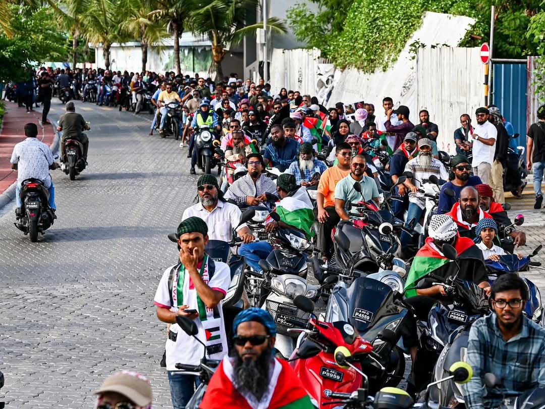 “نُظّمت مساء الأمس الجمعة ١١إبريل 2025 في مدينة ماليه، عاصمة جمهورية المالديف، جولة بالدراجات النارية تضامنًا مع الشعب الفلسطيني ودعمًا لنضاله من أجل نيل حقوقه المشروعة والاستقلال. وقد جاءت هذه الفعالية بمبادرة من عدد من علماء الدين وبالتعاون مع منظمات من المجتمع المدني، في إطار التأكيد على الموقف الشعبي الثابت في مناصرة القضية الفلسطينية.”