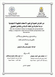 دور القرائن الطبية في تغيير الأحكام الفقهية الاجتهادية: دراسة مقارنة بين الفقه الإسلامي والقانون الكويتي/ عايض دواس الرشيدي.- أسيوط: جامعة أسيوط، 1443 هـ، 2022 م (دكتوراه).