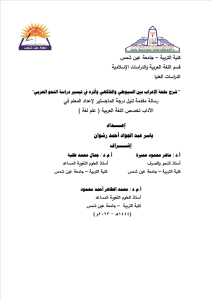 ظاهرة جمع الجمع وشواهدها في معجم لسان العرب لابن منظور: جمعًا وتوثيقًا ودراسة/ صباح البرعي مبارك.- المنوفية: جامعة المنوفية، 1444 هـ، 2023 م (ماجستير).