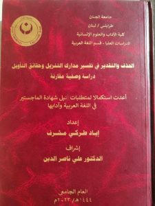 الحذف والتقدير في تفسير مدار التنزيل وحقائق التأويل: دراسة وصفية مقارنة/ إياد طركي مشرف.- طرابلس الشام: جامعة الجنان، 1444 هـ، 2023 م (بحث مكمل للماجستير).