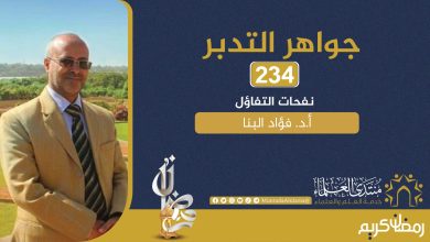 جواهر التدبر (٢٣٤) نفحاتُ التفاؤل بقلم أ. د. فؤاد البنا – ثمرة التفاؤل: أمرنا الرسول صلى الله عليه وسلم…