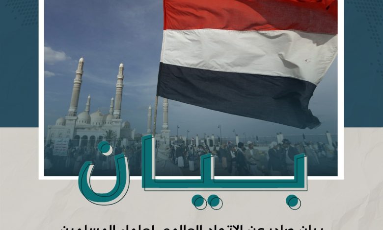 أصدر الاتحاد العالمي لعلماء المسلمين بيانًا بشأن التطورات الجارية في الجمهورية اليمنية، أكد فيه متابعته باهتمام بالغ لما يشهده اليمن من أحداث وتحديات سياسية وأمنية تمسّ حاضر البلاد ومستقبلها، وتنعكس آثارها على أمن المنطقة واستقرارها.